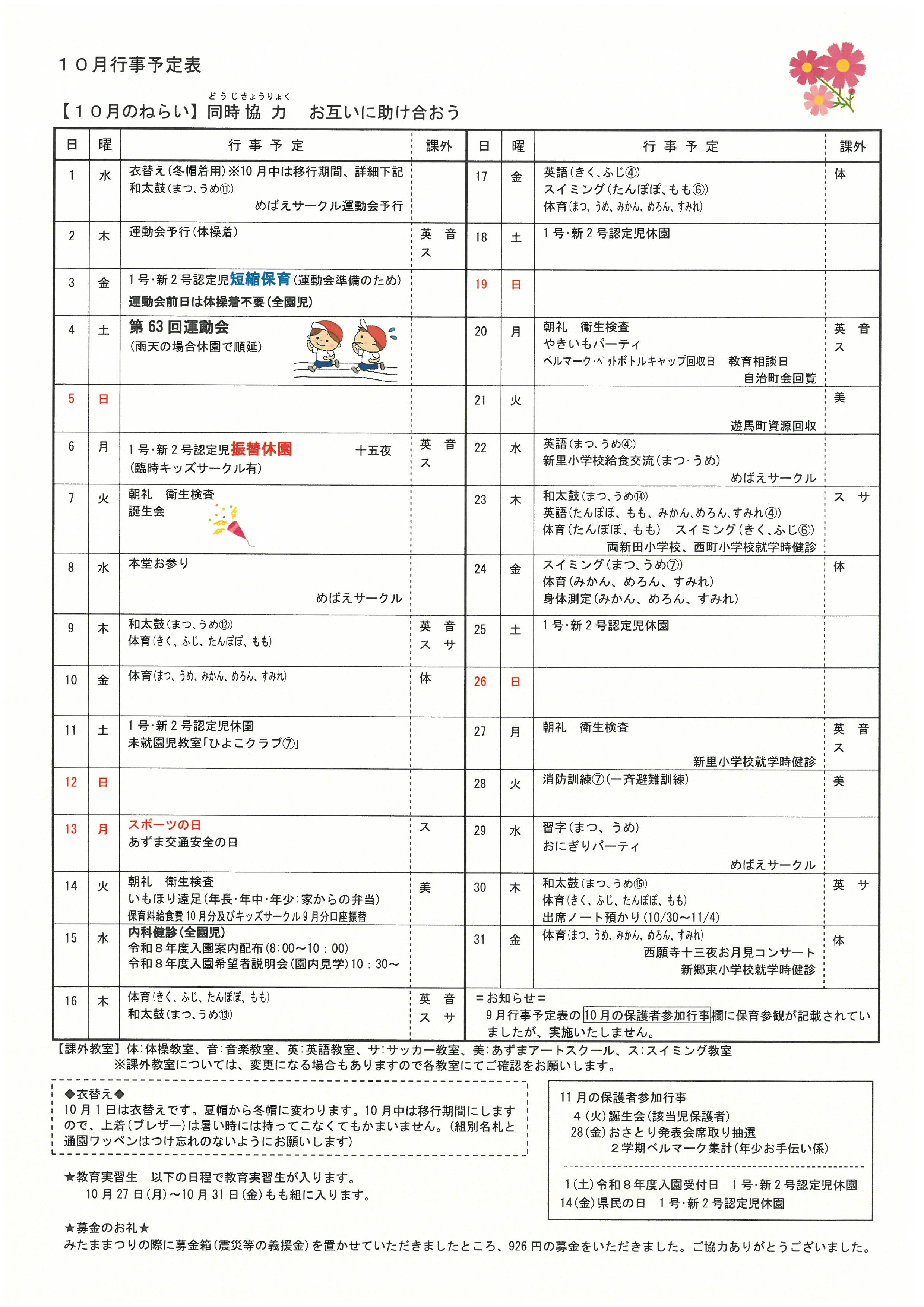 埼玉・草加市にある学校法人西願寺学園 認定こども園あずま幼稚園は佛教情操を教育の柱に、心の教育を基本とした教育課程を編成しています。
