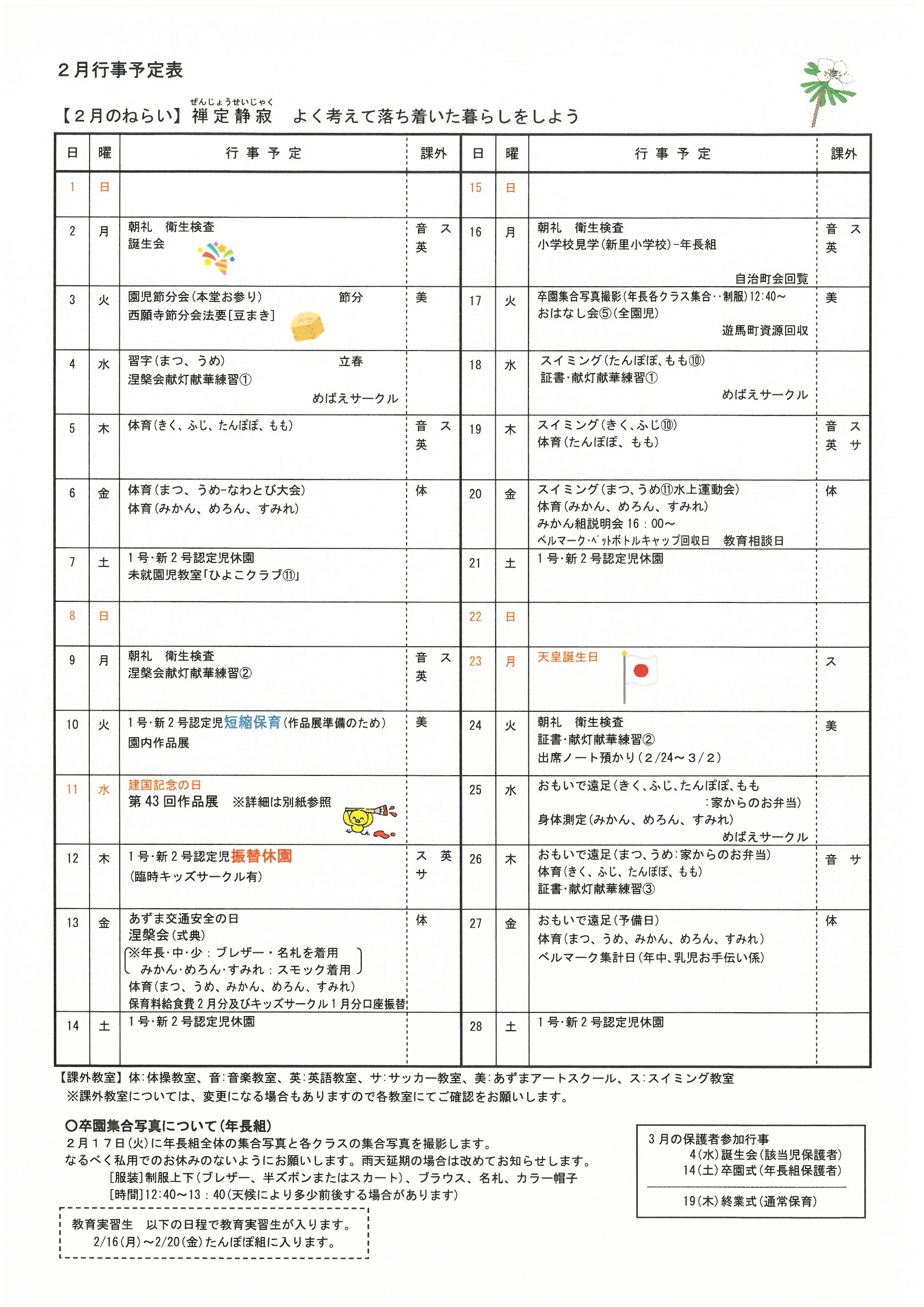 2月園だより・行事予定表